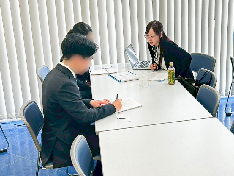 初めは緊張のせいか、たどたどしかった学生が、人事の方から『もっと感情を出していいんだよ』『君ならもっと相手を喜ばせられる』と背中を押されるようなフィードバックを受け、次第に表情に笑顔が見られ、目が輝いていく様子が印象的でした。